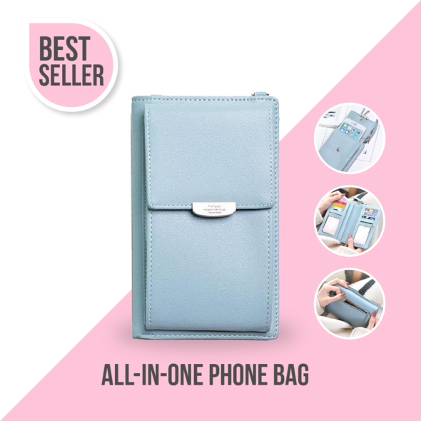 THE GREAT BAG FOR YOUR PHONE & PERSONAL ITEMS! ALL IN ONE DESIGN-MULTI-FUNCTION CLUTCH CROSSBODY PHONE WALLET CASE.