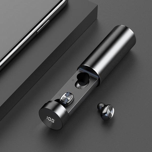 The headphones are designed independently of one another and can be used separately. A headphone is connected to a mobile phone. Equivalent to two independent Bluetooth headphones or two headphones can be used together. Cool watch breathing light, classic blue light, between two breaths