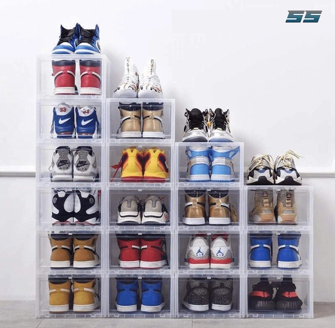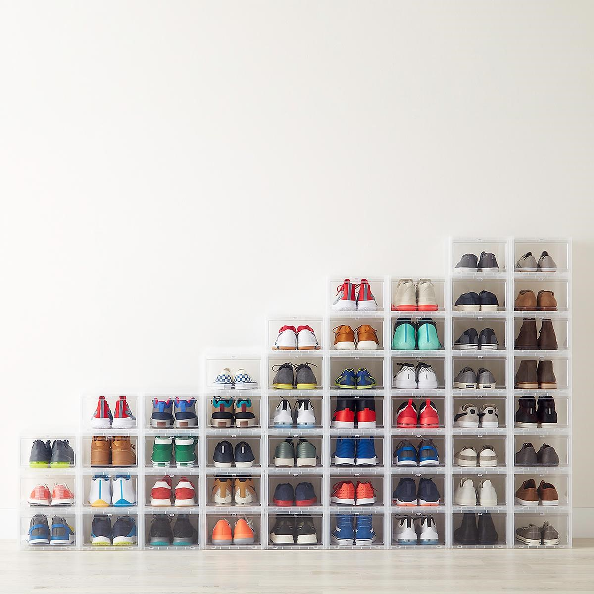 You can easily take out your shoes even when units are stacked or on a high shelf. The see-through materials allow you to see what's inside at a seconds glance.